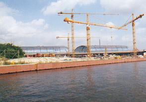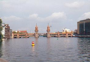 Oberbaumbrücke ( Warschauer Straße ) rechts davor Osthafen - Speicher |